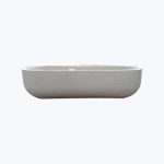 De boca y base cuadrada con cantos redondeados.