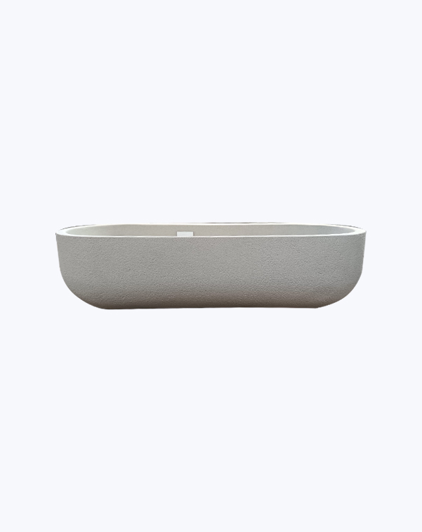 Forma cónica baja redondeada. Acabado texturizado, símil concreto.