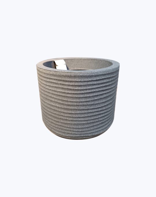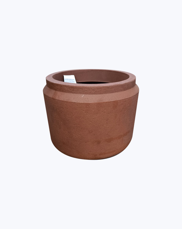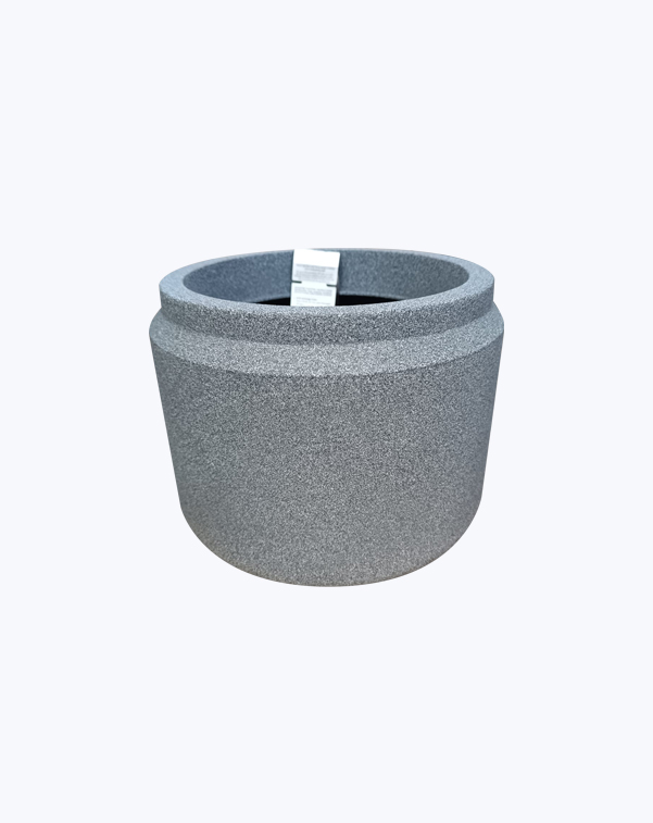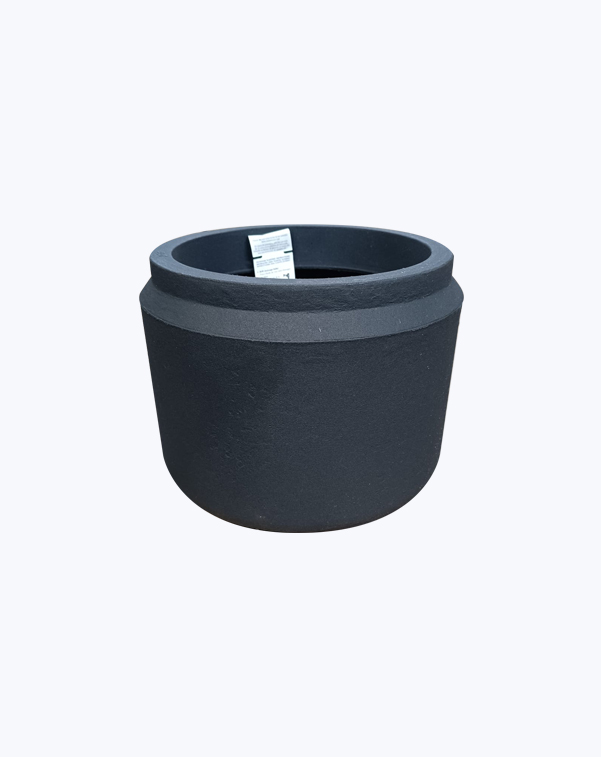 Maceta liviana de plástico rotomoldeado.